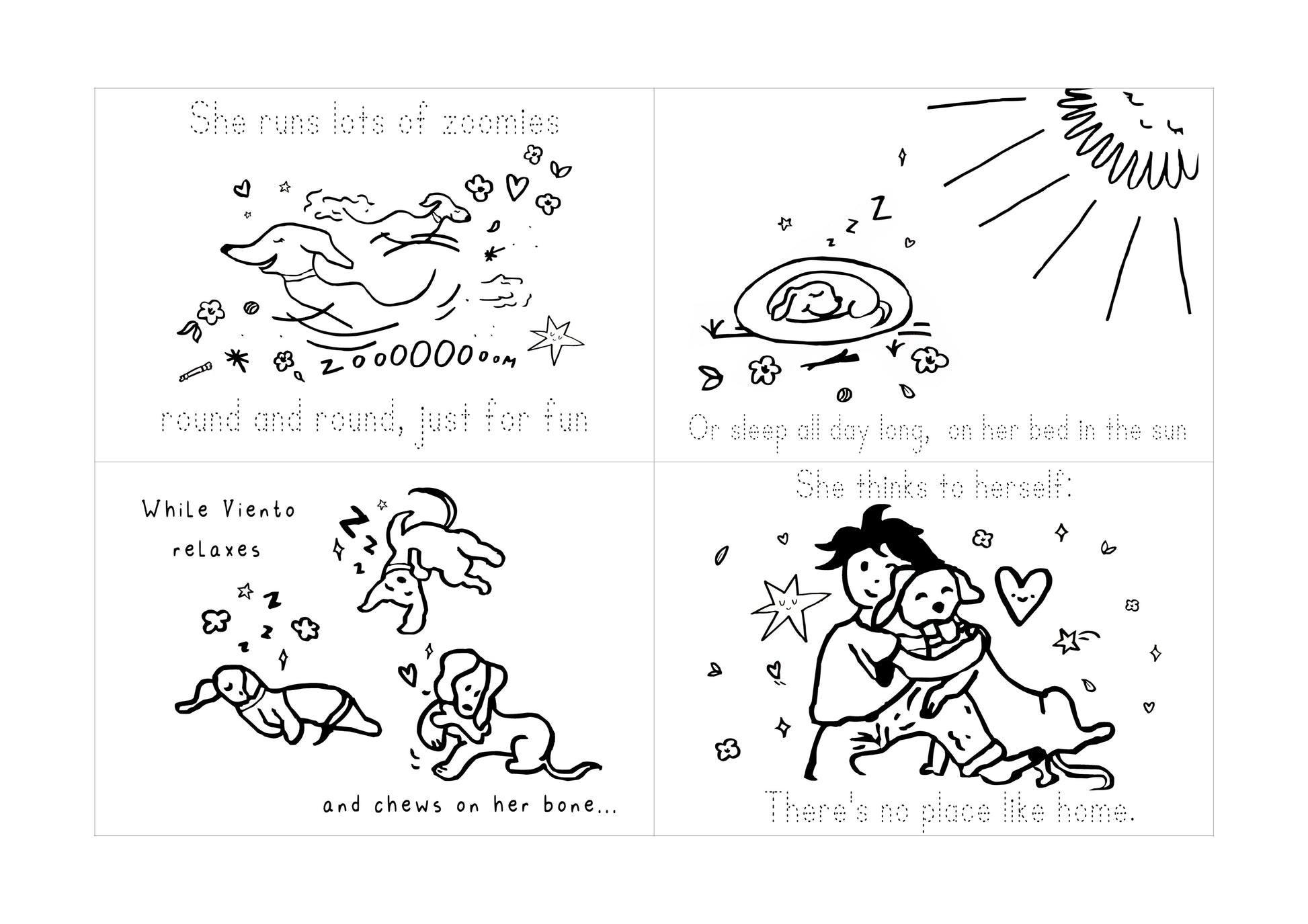 Viento the greyhound. A real underdog story that you can help tell, and bring colour to Viento's world.